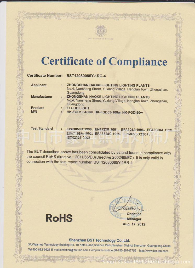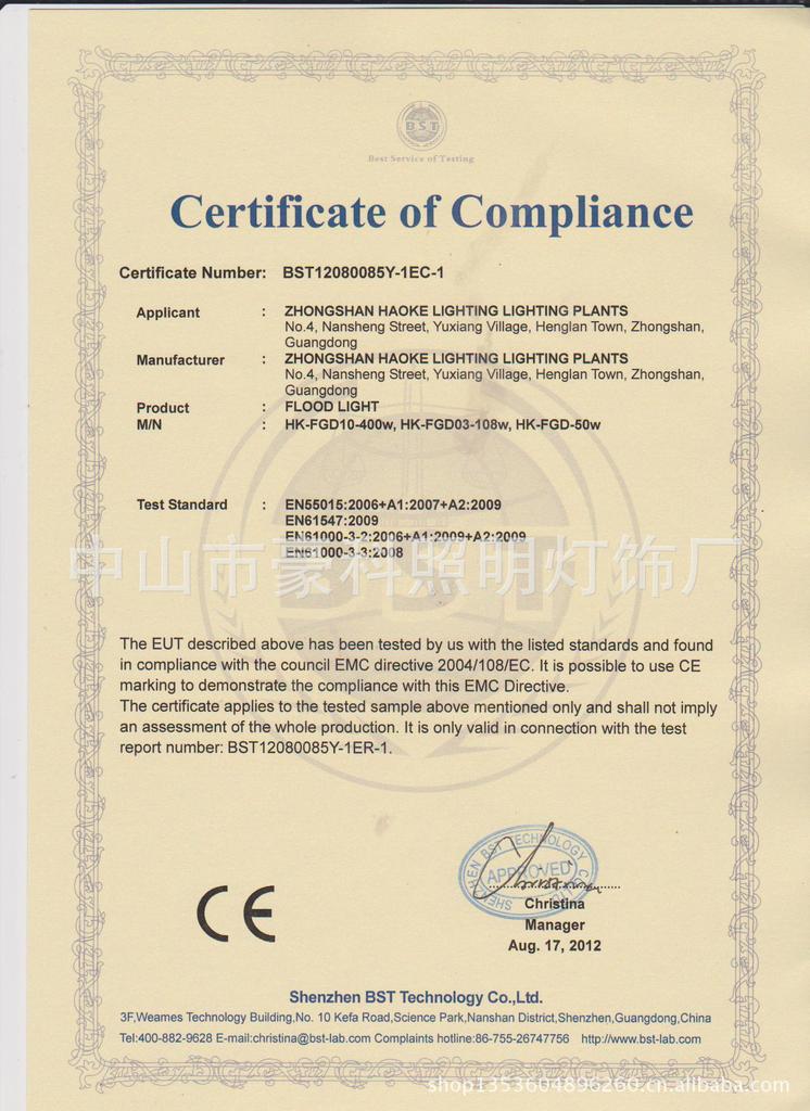 CE,FCC,RoHS证书