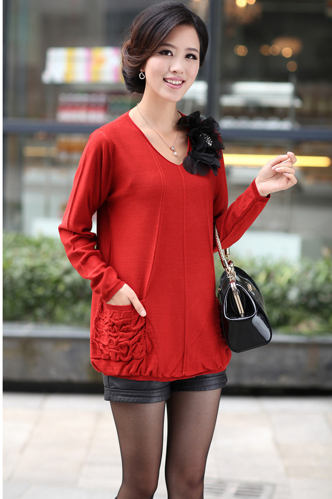 3926-1 批发酷比兔 2012秋冬时尚新款V 领钉花大口袋毛衣
