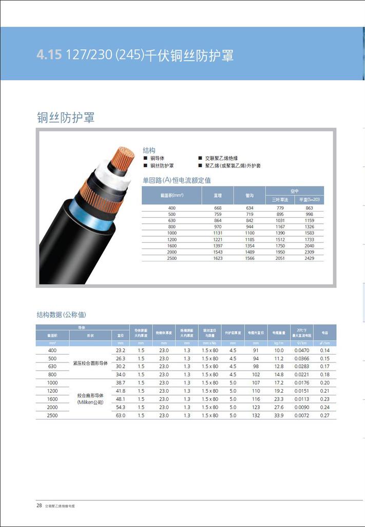 127/230(245)千伏铜丝防护罩 交联聚乙烯绝缘电缆 LS/LG Cable