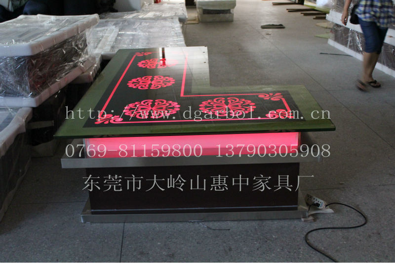 厂价定制KTV茶几, 玻璃台面,木几身,不锈钢装饰,大理石装饰等效果用材由厂家自行设计,可来图来样生产! 发光效果有单色光与变色光源,变色光源可由客户喜好订做!