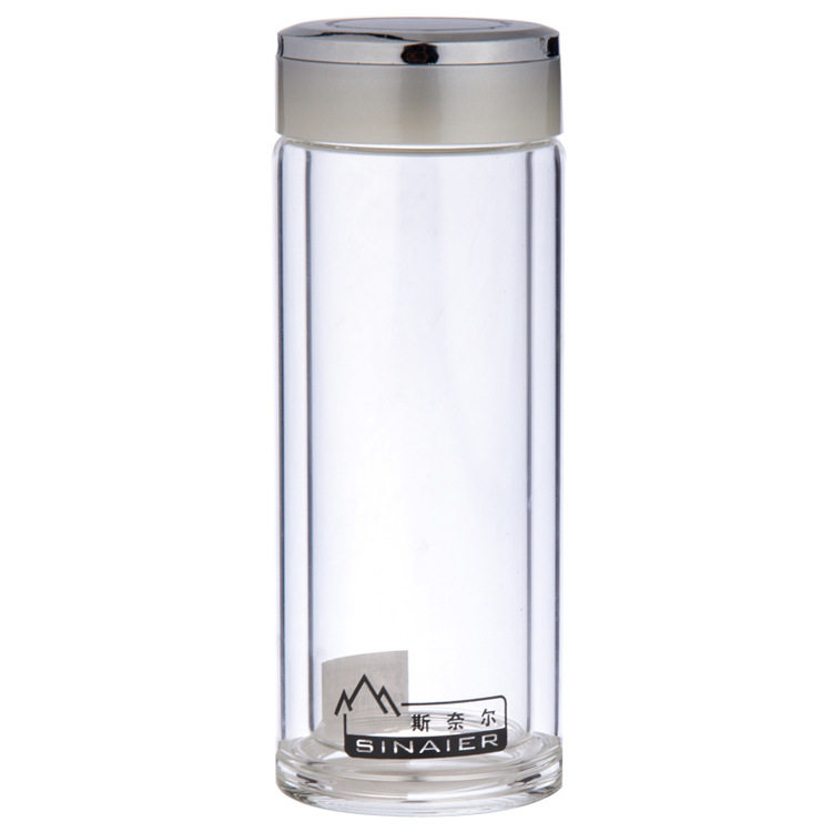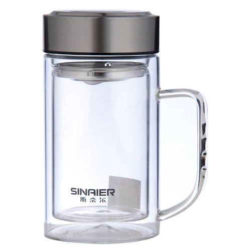 斯奈尔厂家供应创意玻璃杯 耐热水晶杯 合金盖双层玻璃杯茶具批发
