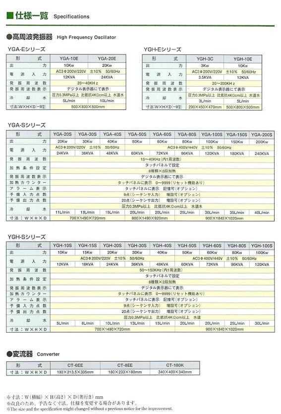 YGH-Sシリーズ (20~40Kw:100~180KHz) |