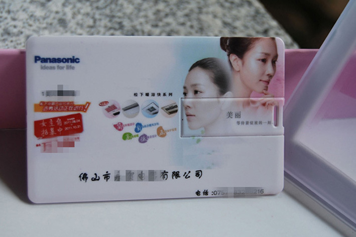 4. 具有广告作用: 卡片概念U盘,可面彩印各种图案,优盘里面可以植入自动播放视频或客户删不掉的宣传文件,有些企业用它可以用来送礼又有宣传作用;