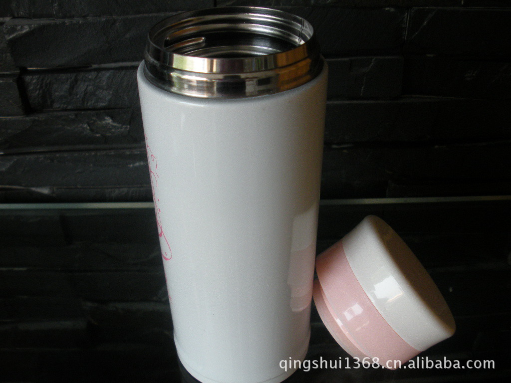 材质:201不锈钢+杯身喷漆+杯盖带茶隔