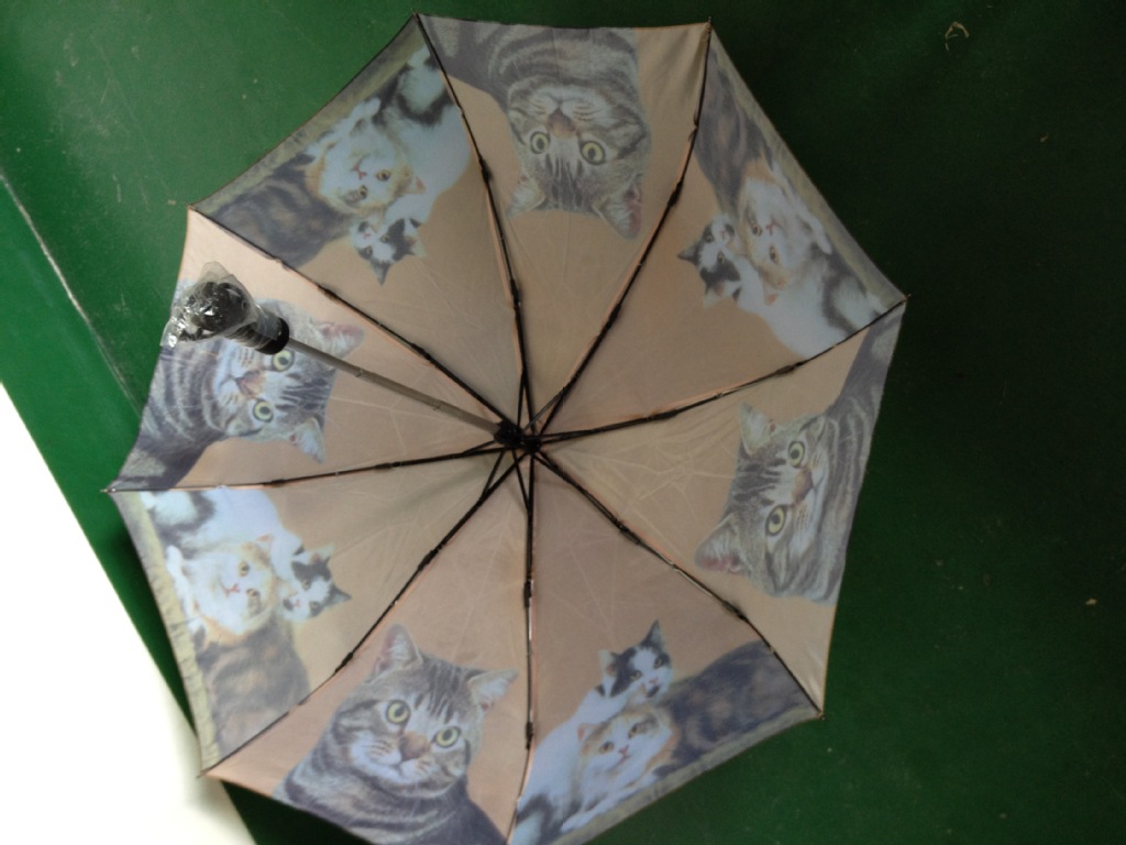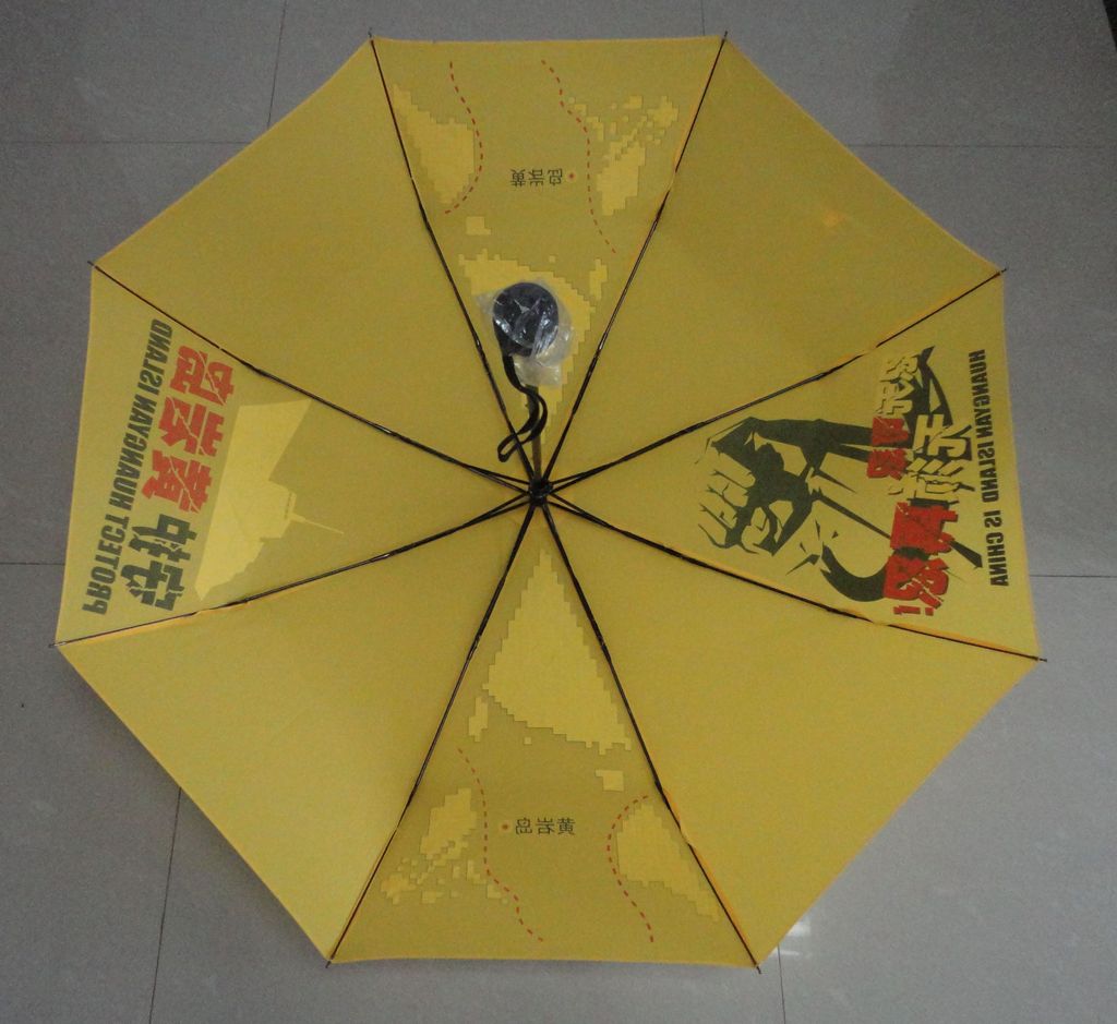 伞柄:三指塑胶手柄配塑料挂绳,四指木柄配纤维线绳