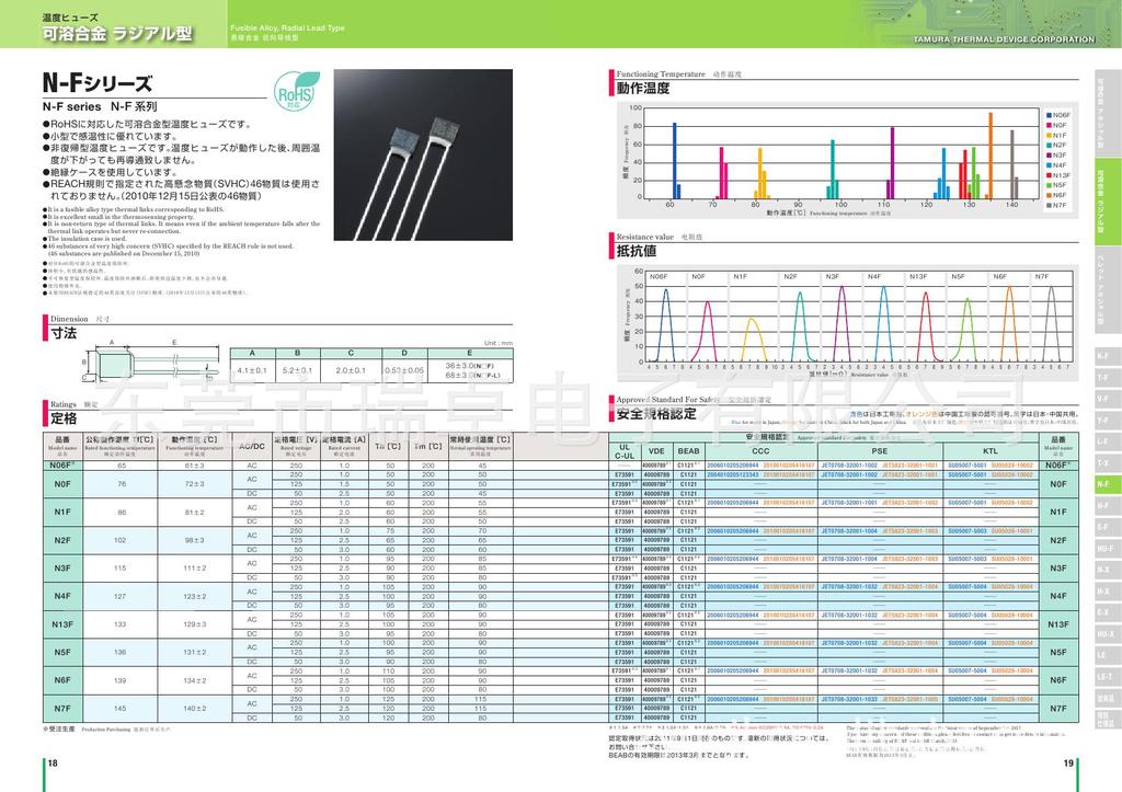 田村TAM N-F型温度保险丝:N06F TAM,N0F TAM,N1F TAM,N2F TAM,N3F TAM,N4F TAM,N13F TAM,N5F TAM,N6F TAM,N7F TAM