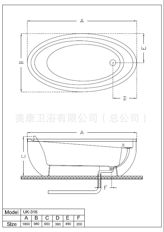 美康UK-316 亚克力浴缸拥有更好的保温性,容易清洁,有更多的颜色可以选择。可以增加按摩、气泡、恒温、自动清洗等功能。