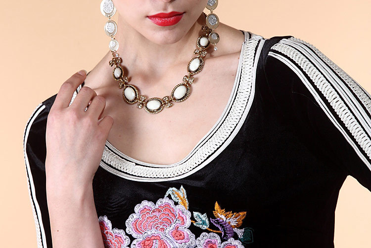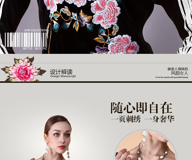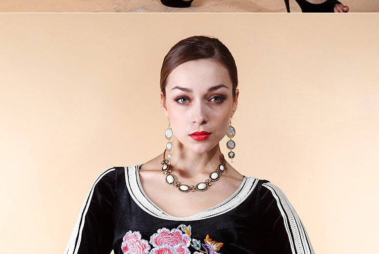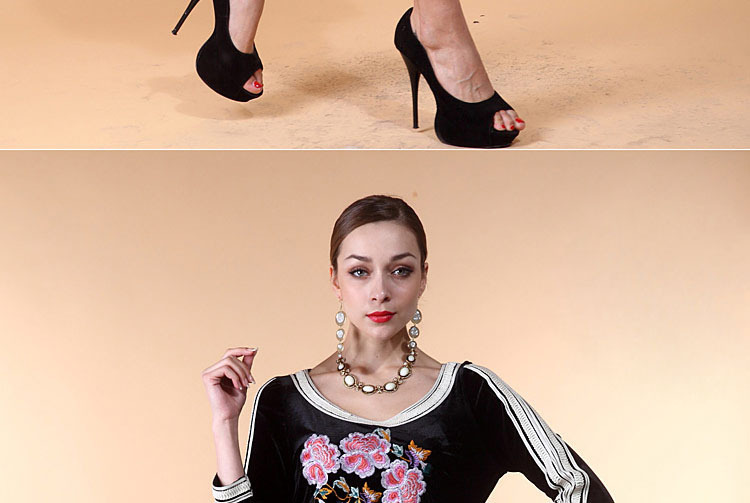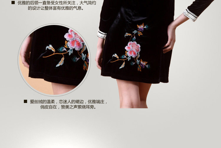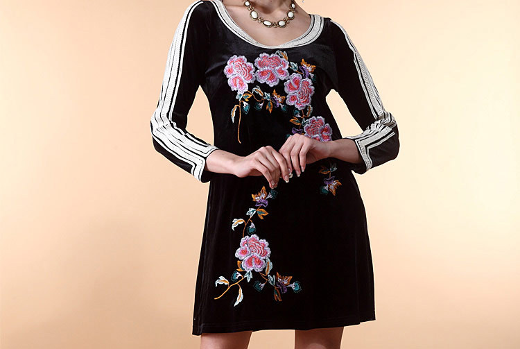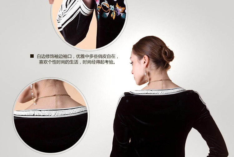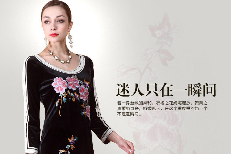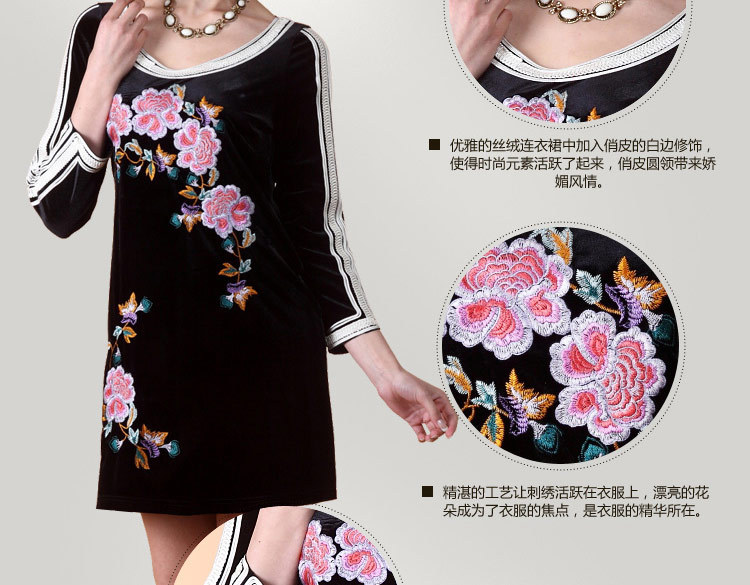 2201#冬装新款连衣裙打底刺绣花长袖大码女装修身金丝绒韩版
