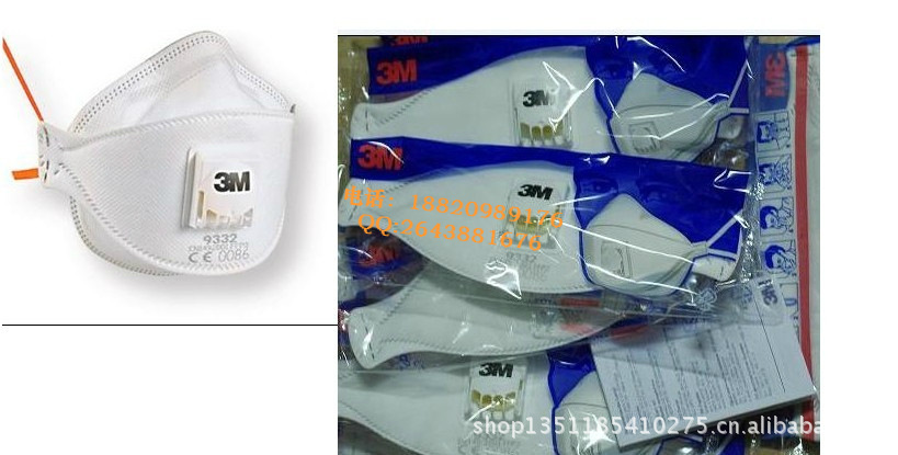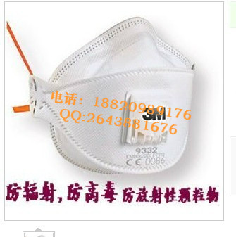 3M9332防护口罩:(符合FFP3标准)用于对高毒和放射性颗粒物及焊接作业时对金属烟的防护,99%以上的过滤效率,更适合湿热环境或长时间佩戴防护。
