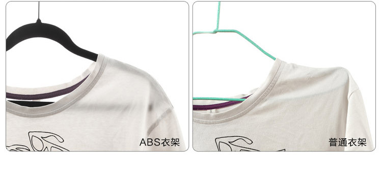 4.防滑性能好,本产品的材质是ABS改性环保料,外层绒毛经静电植绒机植上,再由高温处理,就是这层绒毛象魔术师的手一样有种无形的力量抓住衣服不滑落,有效克服了普通衣架一不小心就滑落到地上的缺陷。