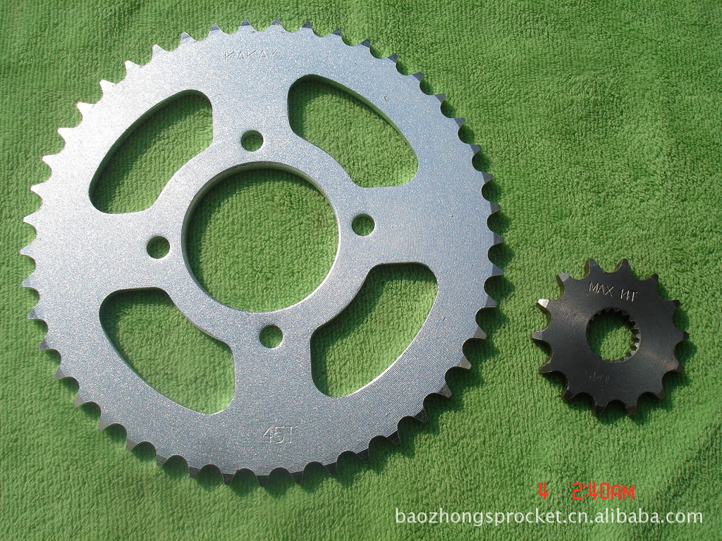 大链轮采用正厂优质45#钢材,小链轮采用20CrMnTi,全部为锻打工艺,网带炉热处理,硬度更均匀,更稳定,原装设计,原装配套。