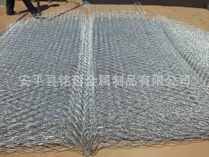 属线材编织的角形网(六角网)制成的网箱,使用的金属线径是根据六角形的大小而不同。如果是金属镀层的金属线六角形,则使用线径为2.0mm到4.0mm的金属线,如果是PVC包覆的金属线编织的六角网,则使用外径为3.0mm到4.0mm的PVC(金属)线.外框边缘的线则使用比六角网线粗一号的线。