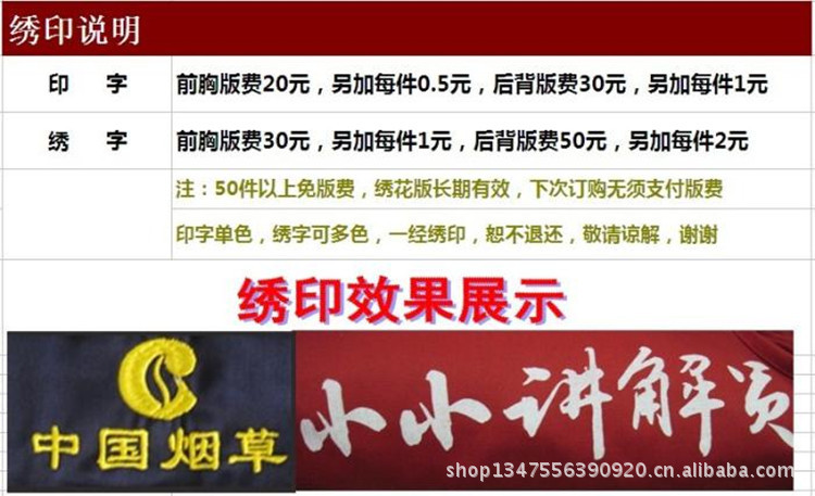 公司介绍:上海沃家是专业经营范围广泛,向下直接针对服装行业,服装设计、生产及销售于一体,随着中国的迅速发展一起成长,现拥有多个系列产品生产线,主要生产工矿企业职业装,西服,衬衫,夹克,领带,丝巾,户外用品等。有种类齐全的样品库。常年备有大量现货T恤,交货迅速,并可根据客户要求印、绣公司名称或LOGO。我厂具有完善的质量管理体系,厂房占地5000平米,拥有员工近三百人。欢迎各界人士来厂参观指导。产品分类:普通工装.司法行政制服.文员服装.西装.衬衫.领带.丝巾.夹克衫.孕妇装.保安服.保洁服.厨师服.宾馆,饭店服装.防静电制服.防护服.工程服.促销服.运动服.广告T恤.圆领衫.长袖T恤.短袖T恤.广告伞.宾馆饭店服装. KTV服装.长袖工作服.短袖工作服.迷彩服.军训服.护士服.医生服. 美容服.毛巾.围裙.反光雨衣.雨披.冲锋衣.大衣.风衣. 连体服.空姐服.羽绒服.棉衣.摄影马甲.马甲.学校校服.幼儿园服装.安全鞋.特殊功能鞋. 食品帽.防尘帽.防护帽.防静电帽.贝雷帽.棒球帽.工具包.双肩包.旅行包.电脑包.手提袋.无纺布袋.礼品袋.帐篷.工地帐篷.救灾帐篷.迷彩帐篷.沙滩椅.户外用品等。联系方式:工厂地址:上海市松江区沪松公路1399弄120号。分工厂地址:上海市祁连山路689号3号楼4楼。电话:021-67719270,18016448268 梁先生 13918753464 卞小姐