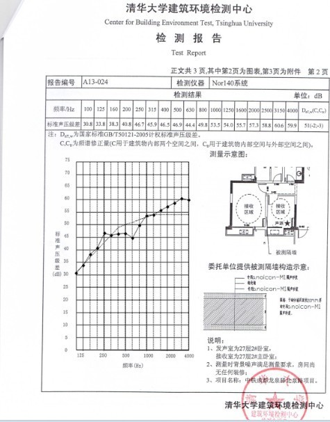 经清华大学建筑物理环境检测中心检测,采用Anoicon-G1浮筑地面系统后,能达到国家二级楼板撞击声隔声标准68dB,撞击隔声改善量(△Lpn,W)8--12dB。