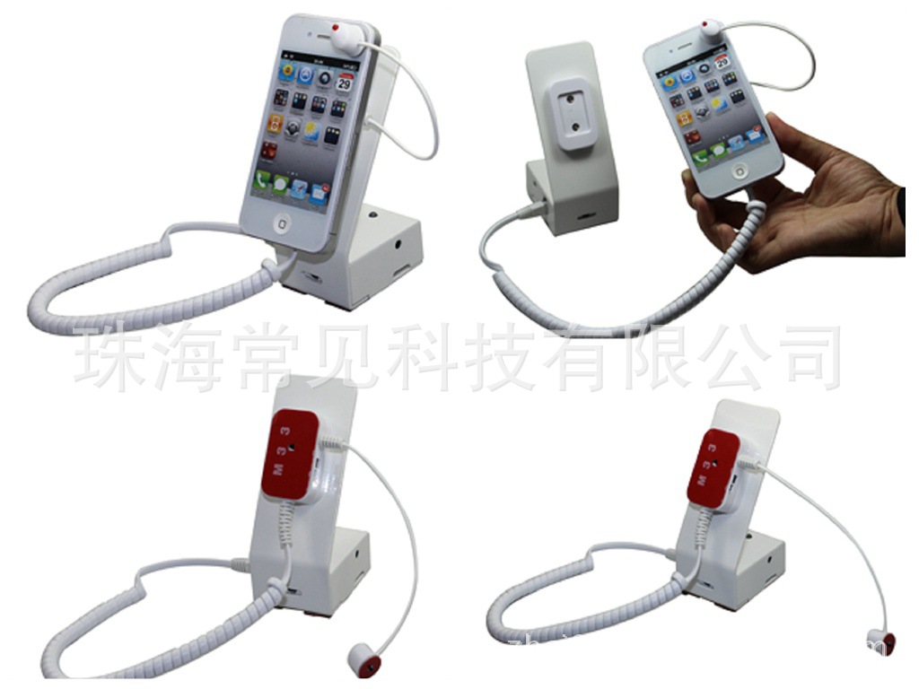 产品介绍:IES1110是专为手机设计的双触点立式独立防盗展示架;内置高分贝报警器,并配有无线蓝牙密码报警解除设计。工作和报警状态的双色指示;使您的展品更安全。遥控密码解锁+充电电池+105db+双触点功能描述:1、断线报警,即剪断连接展机的任意连线报警。2、传感器报警,即强行摘下展机背面的传感器报警。3、充电断开报警,即拔出展机的充电接口报警。4、充电功能,为展机提供电源,并为展机电池充电。5、管理功能,可设置充电时间间隔,充分保护展机的电池寿命。首次安装:1、将展示架固定2、撕去展示架正面3M胶上的胶皮,将展品背面粘在展示架上3、将充电线连接展品的充电接口。