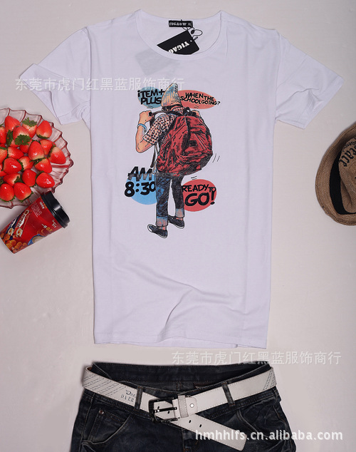 休闲款男T恤;集聚个性的春夏百搭申士高档男T,是一款市场畅销利润空间大的时尚潮T,此款采用新技术高档品牌印花,手工精细,风格时尚!此款价格比其它款略高是因为面料要比其它普通T恤好一些采用的是高档的印花,是比普通的印花要贵些喔。