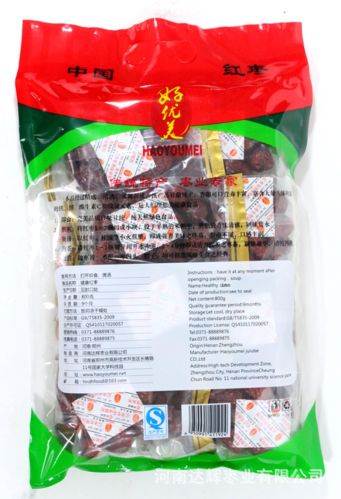河南达辉枣业有限公司是一家从事枣制品研发、生产、销售的股份公司,位于河南省郑州市高新技术开发区国家大学科技园内,公司创立于2010年2月8日,主要产品有“好优美”枣片系列、水晶枣干系列、饴糖枣糕系列、红枣咖啡系列、保健枣粉系列(专为老人和女士设计)、多维枣糖系列、健康红系列、轩辕黄帝御枣系列、博士情系列、野酸枣系列、金丝小枣系列、枣白金系列等。公司系列产品已经在省内各大超市销售(如沃尔玛超市,大商新玛特超市等),外部已远销香港和澳门,出口东南亚及日本和韩国。