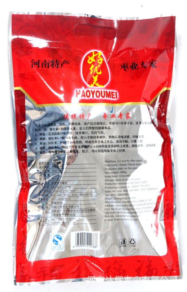 河南达辉枣业有限公司是一家从事枣制品研发、生产、销售的股份公司,位于河南省郑州市高新技术开发区国家大学科技园内,公司创立于2010年2月8日,主要产品有“好优美”枣片系列、水晶枣干系列、饴糖枣糕系列、红枣咖啡系列、保健枣粉系列(专为老人和女士设计)、多维枣糖系列、健康红系列、轩辕黄帝御枣系列、博士情系列、野酸枣系列、金丝小枣系列、枣白金系列等。公司系列产品已经在省内各大超市销售(如沃尔玛超市,大商新玛特超市等),外部已远销香港和澳门,出口东南亚及日本和韩国。