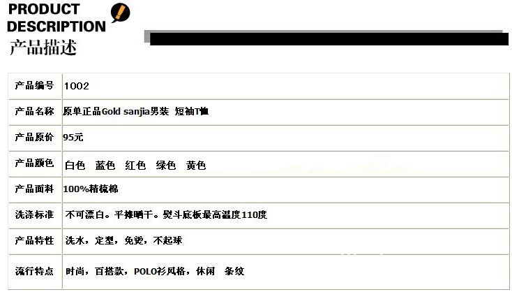 金三甲 原单正品男式T恤 高档短袖POLO衫 时尚纯棉T恤 1001