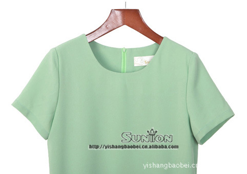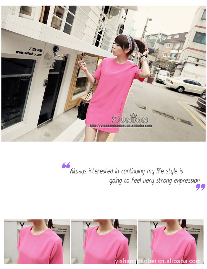 2012春夏新款糖果色果绿玫红色 短袖连衣裙短裙 行家拿货周