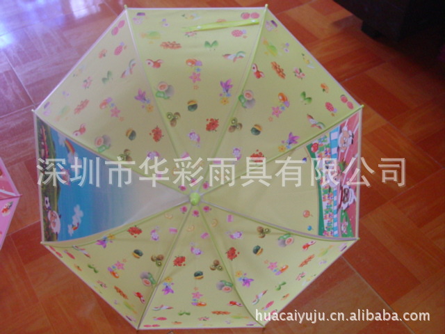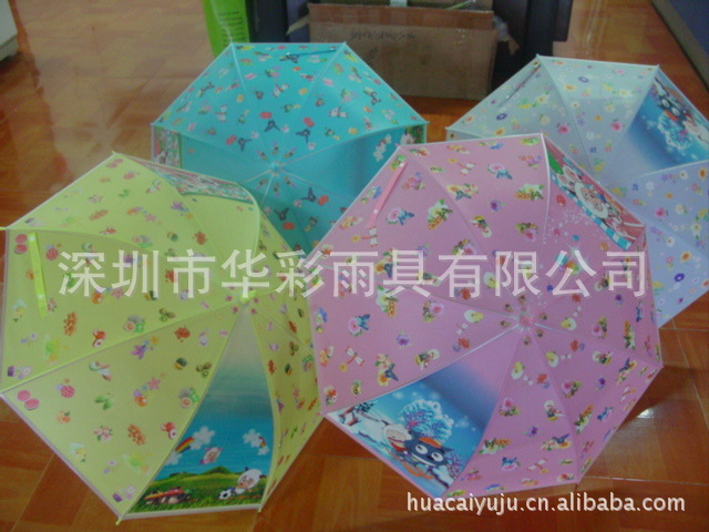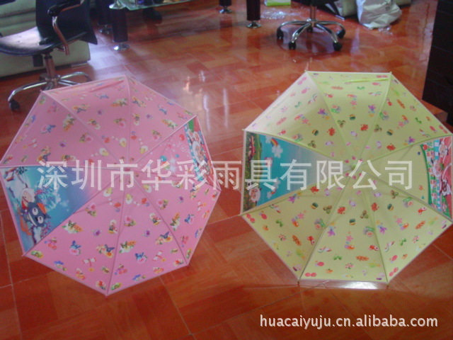 伞柄:三指塑胶手柄配塑料挂绳,四指木柄配纤维线绳