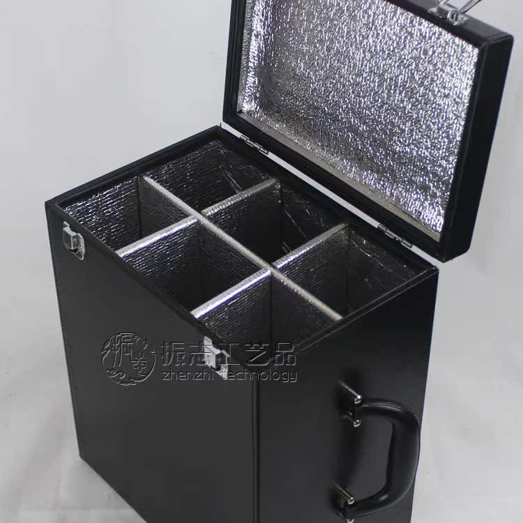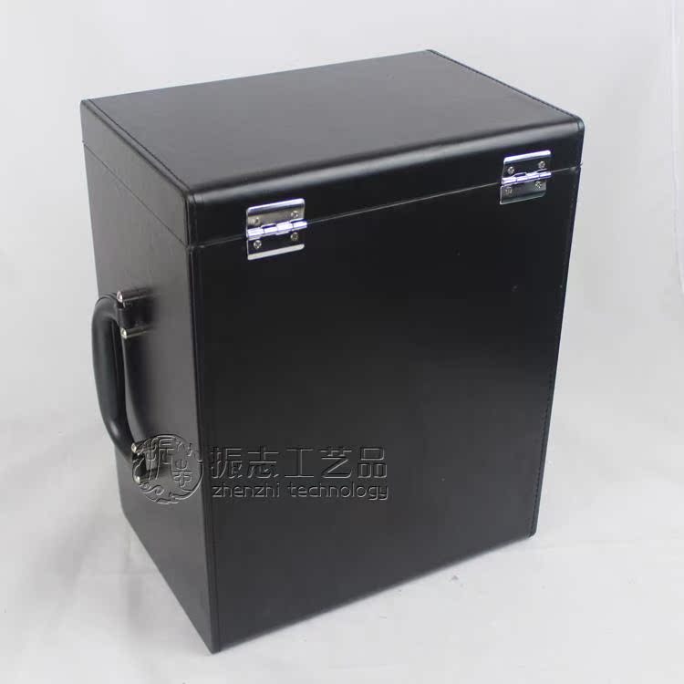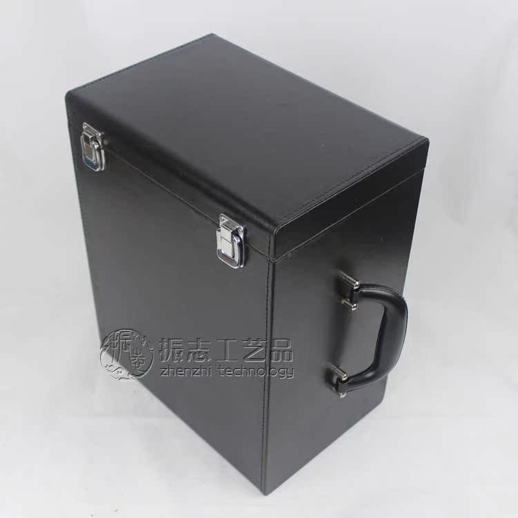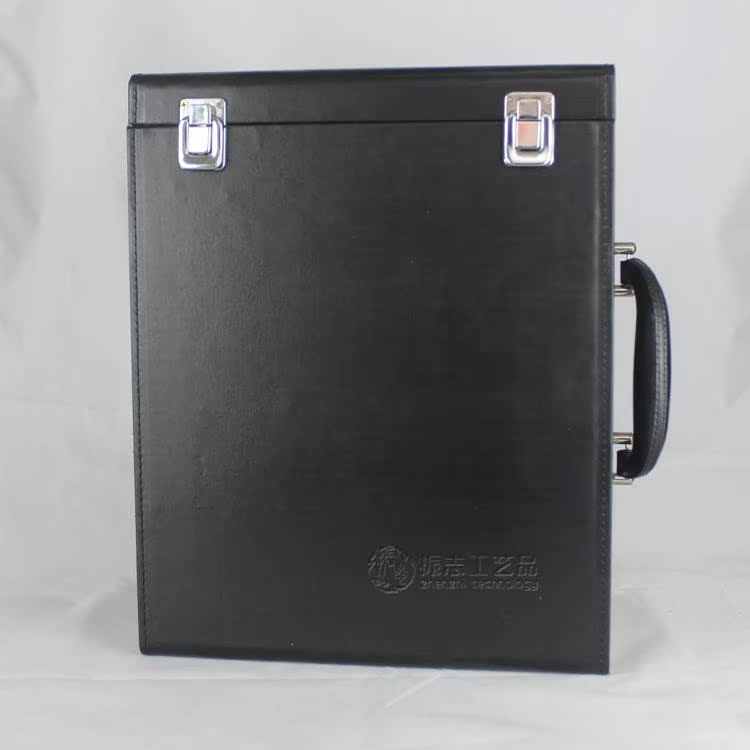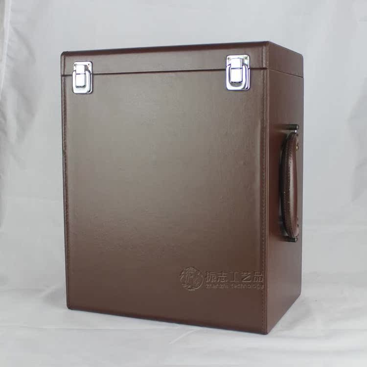 盒子款式:高档PU皮料,皮提手,黑色车线,盒子外径:约27.5x18.5x34.5(不含提手和锁扣)盒子内径:长度约26CM 宽度约17CM高度约:33CM适用范围:标准750ML红酒瓶盒子内里:保温层锡纸盒子净重:约3KG内含配件:酒刀,酒塞,酒环,倒酒器