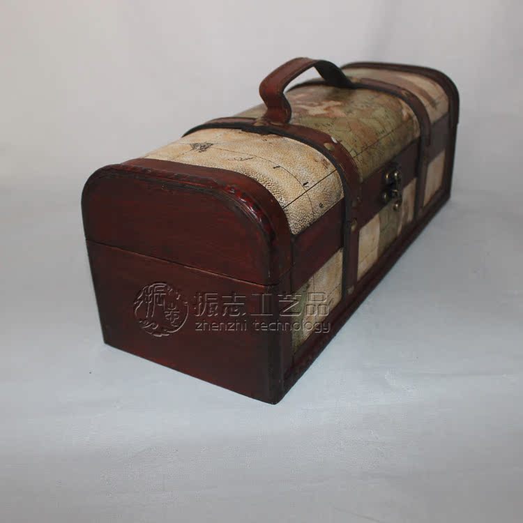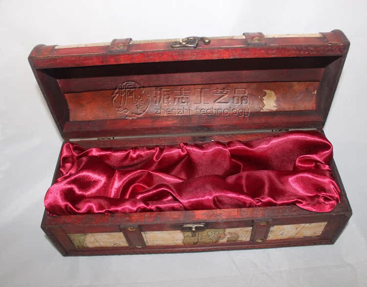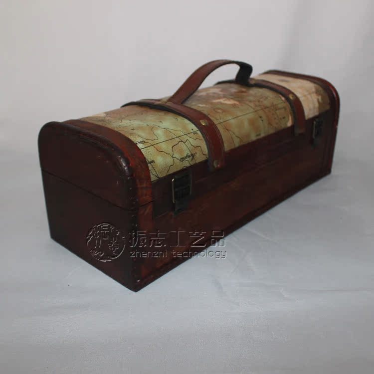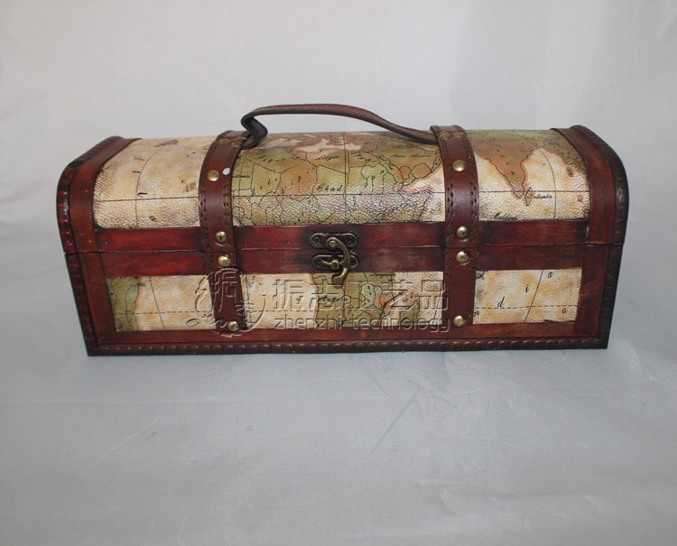 (振志)红酒盒 红酒礼盒 红酒包装盒 仿古木质酒盒 仿古单支地图纹