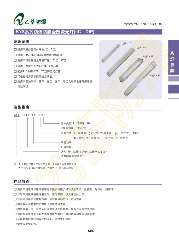 BYS(BAY51-Q)防爆防腐全塑荧光灯一、适用范围