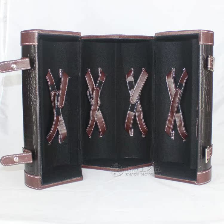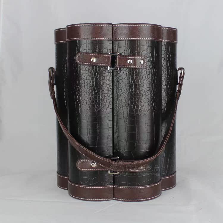 盒子款式:高档PU皮料,皮带提手,白色车线,适用范围:标准750ML红酒瓶盒子内里:高档黑色绒布盒子净重:约3KG不含配件:酒刀,酒塞,酒环,倒酒器