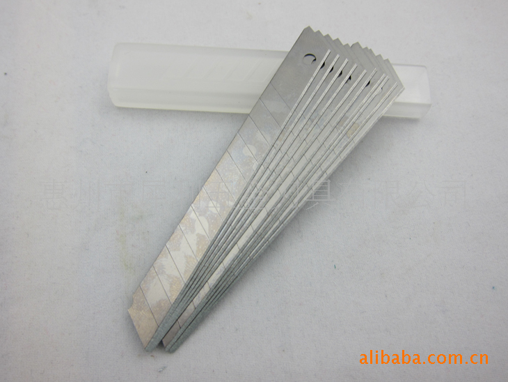 商品介绍 商品名称:利达行C09高质国产高碳钢密纹大美工刀片 品质:一级正品 材质:国产 长度:100mm 宽度:18mm 厚度:0.5 包装:100片/盒