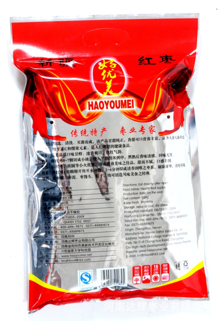 河南达辉枣业有限公司是一家从事枣制品研发、生产、销售的股份公司,位于河南省郑州市高新技术开发区国家大学科技园内,公司创立于2010年2月8日,主要产品有“好优美”枣片系列、水晶枣干系列、饴糖枣糕系列、红枣咖啡系列、保健枣粉系列(专为老人和女士设计)、多维枣糖系列、健康红系列、轩辕黄帝御枣系列、博士情系列、野酸枣系列、金丝小枣系列、枣白金系列等。公司系列产品已经在省内各大超市销售(如沃尔玛超市,大商新玛特超市等),外部已远销香港和澳门,出口东南亚及日本和韩国。