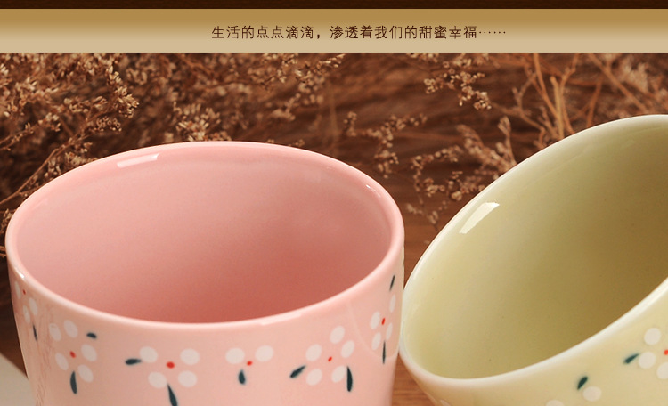 嘉润陶瓷 餐饮用具 水杯子套装 情侣创意杯子 洛阳花