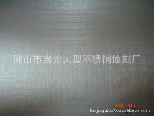 拉丝板- 直拉丝板-双向拉丝板-局部拉丝板-斜拉丝板-三维拉丝板-横拉丝板-十字交叉不锈钢板-手工拉丝板-艺术拉丝板-交叉纹不锈钢 不锈钢拉丝是一种金属加工工艺,是当今不锈钢和不锈钢品,铝制品行业最流行的一种表面处理技术.是对不锈钢及铝产品进行的拉丝效果处理。 不锈钢拉丝一般有几种效果:直丝纹、雪纹纹、尼龙纹。 直丝纹是从上到下不间断的纹路,一般采用固定拉丝机工件前后运动即可。 雪花纹是现在最为流行的一种,由一点点有规规的点组成,可用虫仔砂纸达到效果。 尼龙纹是由长短不一线条组成,由于尼龙轮质地柔软所以可磨不平部位,达到尼龙纹。 不锈钢拉丝很讲究程序和工艺,一般配合拉丝机修复和还原产品刮花的位置及焊缝,最终达到整体的拉丝艺术效果。 彩色不锈钢拉丝板也叫发纹板,是在不锈钢的原面也就是2B上面做处理的。当先不锈钢可以生产直拉丝,斜向(45度角)拉丝,横向拉丝。还有镜面加双向拉丝,欢迎来样、来图、来料加工。