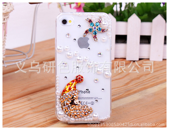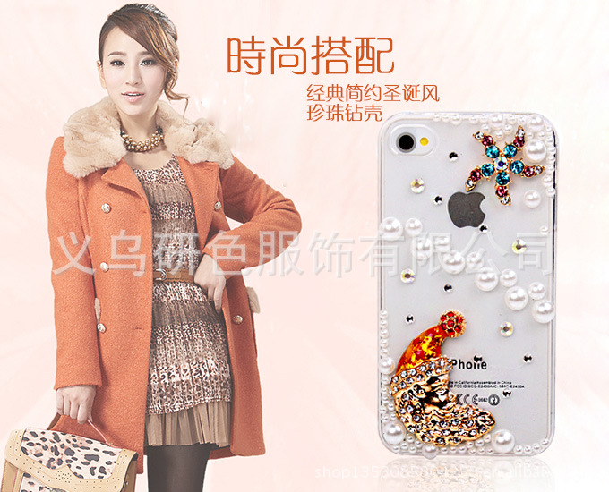 IPHONE4贴钻手机壳 圣诞老人 圣诞节礼品 水钻苹果手机壳 IPHONE5手机壳订制