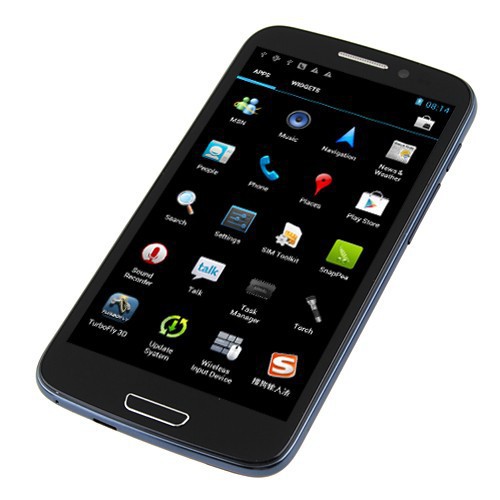 MTK第四代高速智能芯片、MT6577-1GHZ 双核、5.3英寸超大高清炫丽屏、搭载Android 4.0.4 系统、3G(WCDMA/GSM)支持四频、WIFI、双GPS、移动AP-Mobile AP、光线感应器、接近感应器、重力感应器、500万自动对焦+前130万摄像头带闪光灯智能手机。