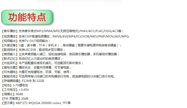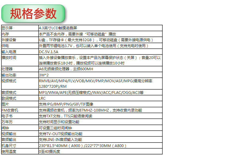 高清视频播放器/4.3寸大屏幕播放器/全屏触摸/智能播放器