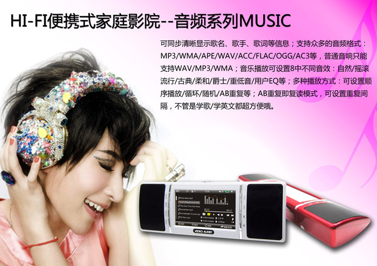视频音响/ MP4 /全屏触摸/4.3寸视频音响/高清支持/