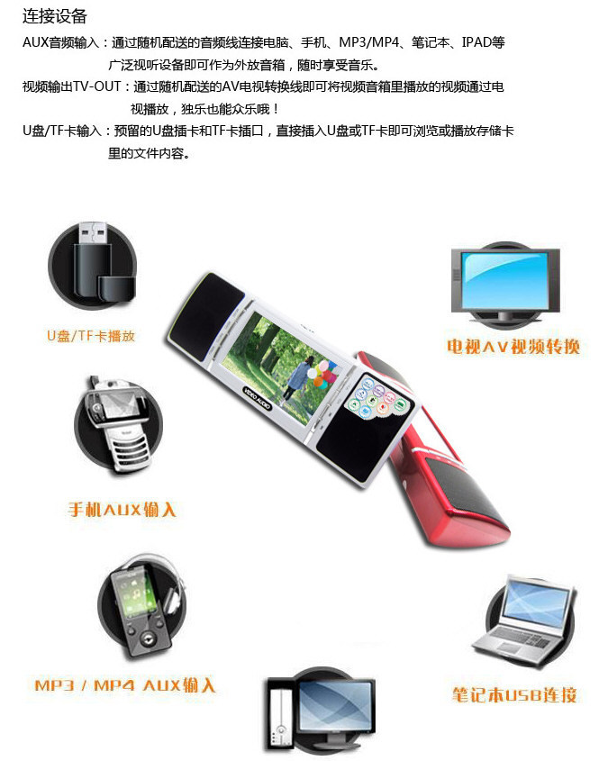 视频音响代替MP4 超重低音 高清视频支持 720P 全格式 视频 音响