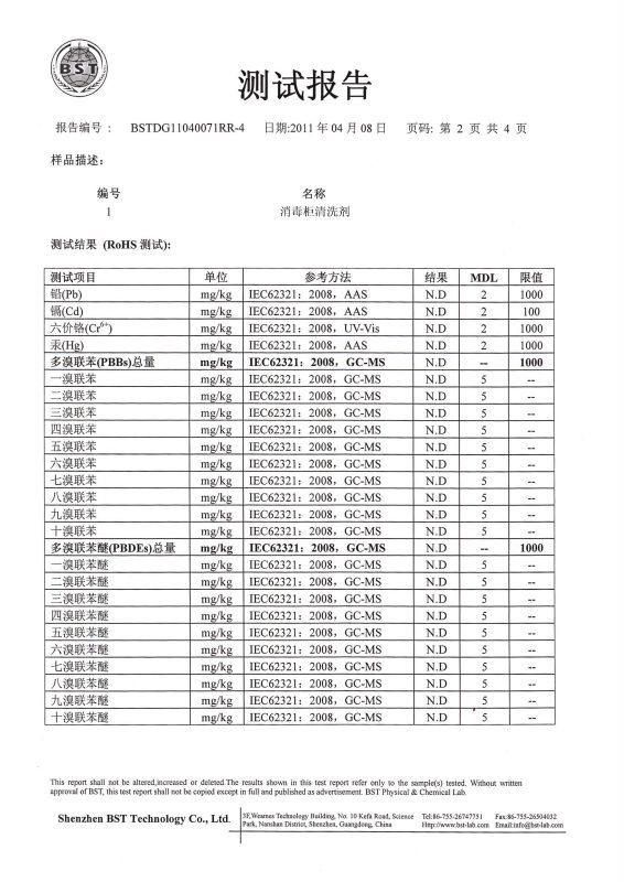 消毒柜清洁剂检测报告: