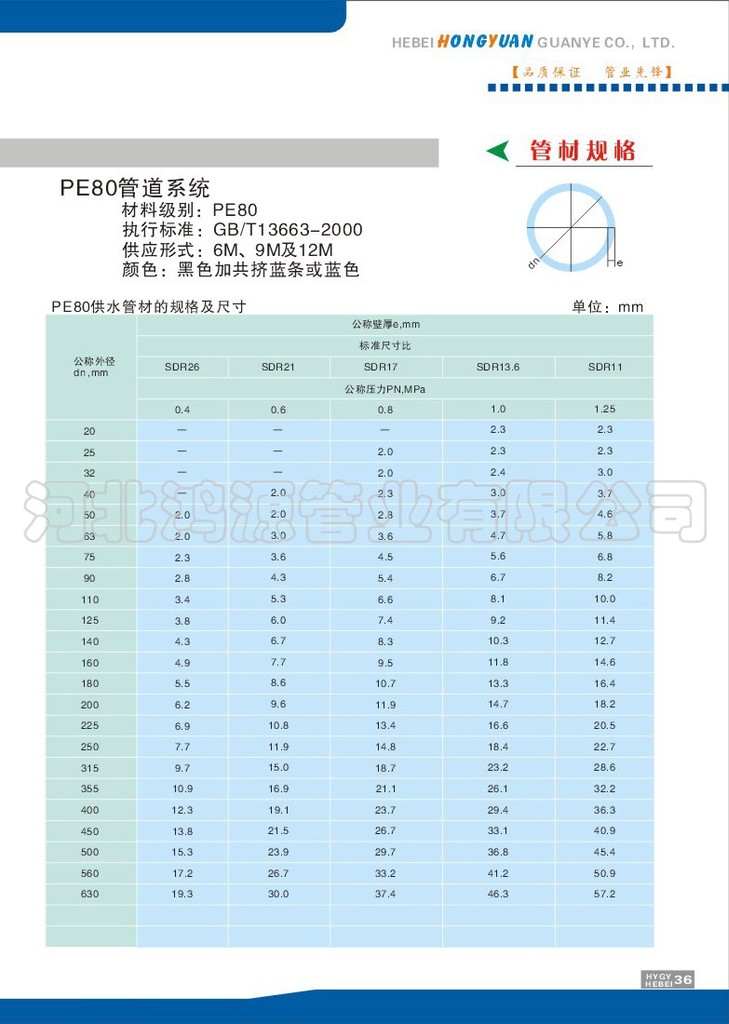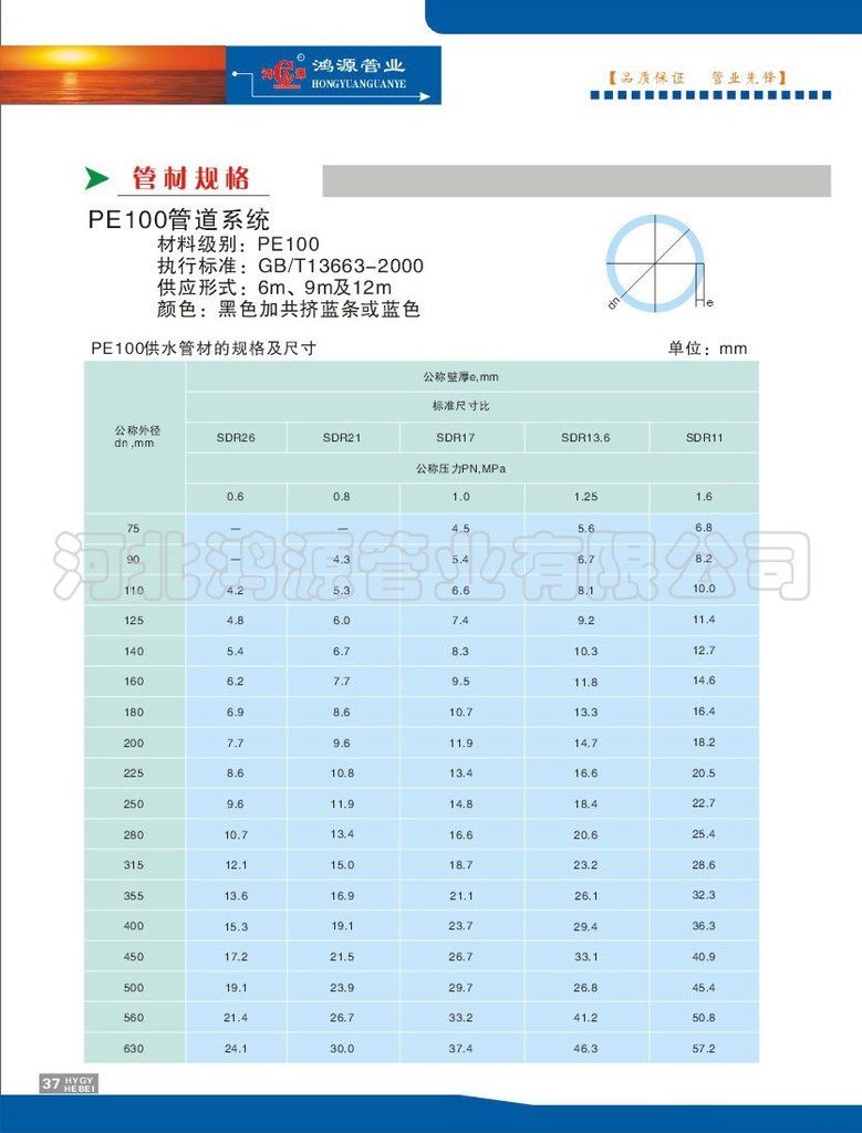 管材规格:20 25 32 40 50 63 75 90 110 125 140 160 180 200 225 250 315 355 400mm