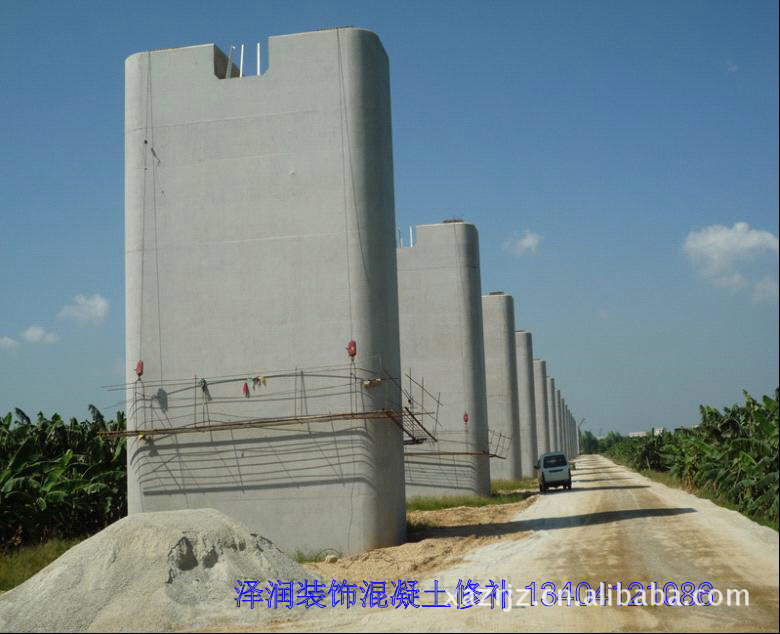 我公司是以清水混凝土保护施工为主体;在清水混凝土保护施工过程中,由于混凝土的模板体系和混凝土浇筑工人水平不一,清水混凝土拆模后,会产生不同与严重程度不等的缺陷。在我们清水混凝土保护施工过程中,接触到清水混凝土的各种瑕疵,但我们根据设计师、业主、总包及清水混凝土现场的情况,做技术分析;以合理、合适的方式进行表面的修补与修饰。现在公司的混凝土修补技术,就是来自于此。 混凝土的缺陷形式很多,比如蜂窝、露筋、麻面等,这些都是小的缺陷,修补及修饰对我公司来说是不成问题,修饰部分的混凝土表面与大面没有大的色差。主要的缺陷是涨模。这种缺陷的修饰需要大量的人工及材料,还需要技术水平高的工人来操作。 我公司的清水混凝土保护材料是日本旭硝子株式会社生产的“Bonnflon” 邦氟隆氟碳保护系列;其中有一种材料叫-下地调整材,他的作用就是调整清水混凝土的颜色和覆盖修补的腻子,我们在混凝土修补后,采用下地调整材进行调色。 专业修补:混凝土的蜂窝、麻面、裂缝、露筋、露震、错台、局部破损等混凝土缺陷 对于混凝土表面的缺陷修补,原则上修补的数量和部位越少越好,确实需要修补时,可根据不同的缺陷用不同的修补方案。混凝土修补效果,保持混凝土原貌,混凝土表面无明显修补痕迹。