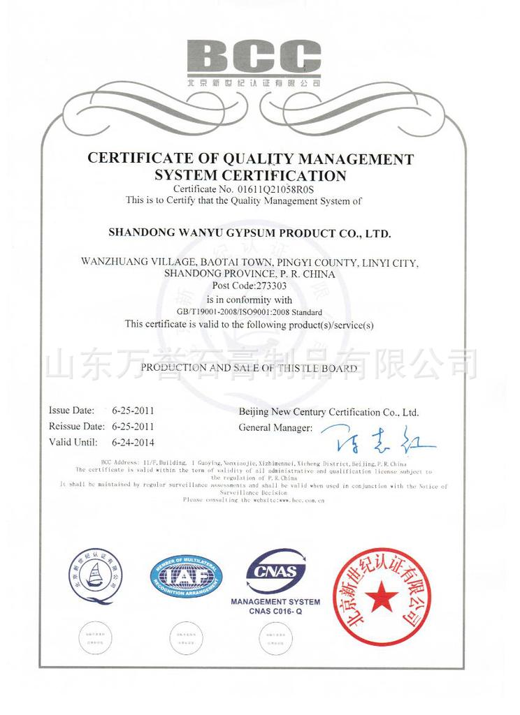 山东万誉石膏制品有限公司位于盛产优质石膏的中国平邑-沂蒙山区的蒙山脚下,全国主要的石膏储藏区-山东省平邑县保太镇万庄工业园。兖石铁路、日东高速公路纵贯东西,东距青岛港、连云港300公里,交通运输便利。公司下辖石膏矿三座,石膏粉加工厂两座,石膏板生产线两条。凭借丰富的生产经验,先进的工艺设备和科学的管理模式,现已顺利通过“ISO9001:2001国际质量体系认证”和“国家建筑材料工业放射性及有害物质检测”公司已注册的“万誉”、“九龙居”牌纸面板由高质环保的石膏原料制造而成,不含对人体有害物质,具备环保、耐火、防潮、质轻、强度高的特征。纸面石膏板安装简便、装饰效果最佳,其独特的室内温度调节功能使家居环境更舒适健康,是当今室内装饰的首选材料。作为不断创新的成长型企业,万誉秉乘“以客户为中心,以市场为导向”的经营理念,并使之贯彻到公司团队的每一个成员。我们将竭尽所能为合作伙伴提供专业的解决方案,全力为合作伙伴创造价值。我们期待与您携手合作,共创辉煌未来!