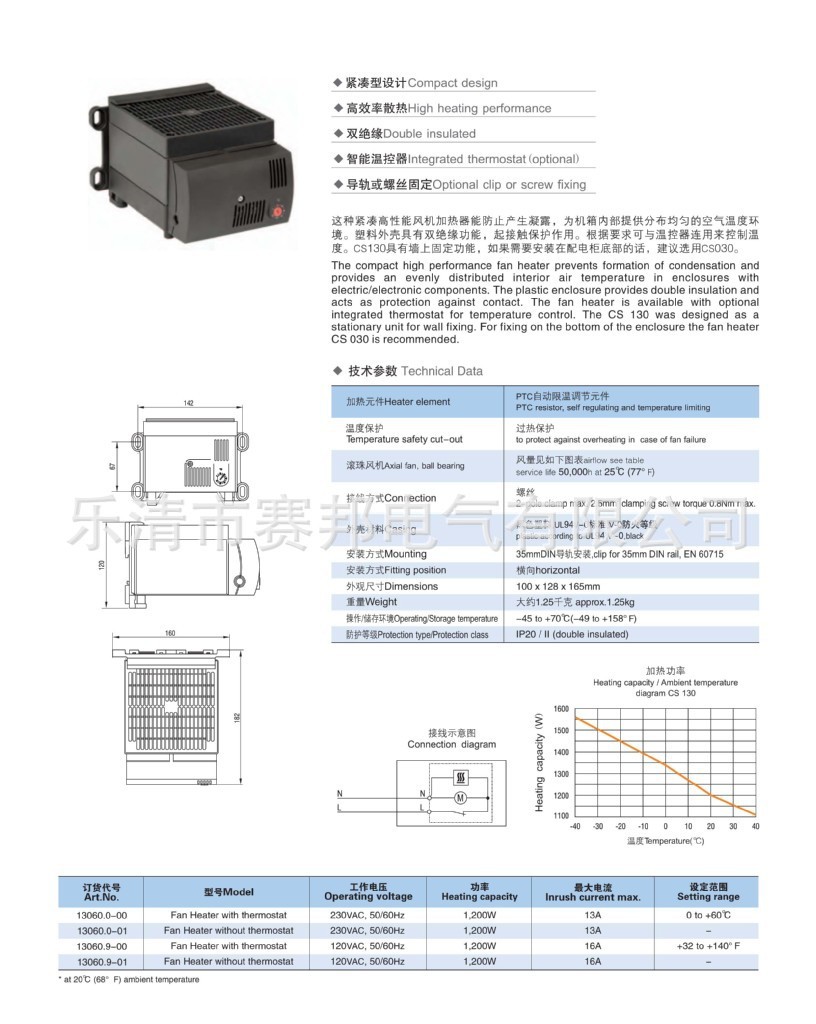 供应加热器CS130-950W 高性能加热器 ptc电加热器