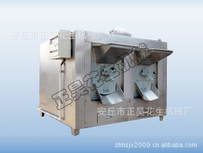 正昊花生机械生产的电热烘烤炉(两桶炉)由传动部分、电加热管、电控箱、滚筒箱、滚筒等部分组成。本机利用温度控制仪自动控制烤炉内温度,自动化程度高、噪音小、无污染,是烘烤花生、榛子、腰果、杏仁、瓜子、芝麻、开心果等颗粒状食品理想加工设备.