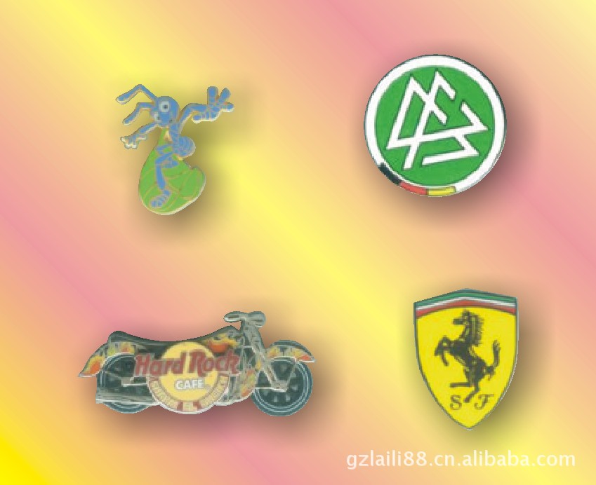 本工厂专业生产各种金属工艺品,广告促销品。如徽章、马口铁徽章、胸章、胸针、钥匙扣、开瓶器、冰箱贴、书签、手机吊饰、纪念币、首饰、袖扣、奖牌、服饰配件,皮饰、案台摆设及PVC软胶等工艺品。主要工艺有:腐蚀工艺、压冲工艺、压铸工艺、马口铁工艺、平板印刷工艺等多种工艺,表面上色处理有:烤漆上色滴胶、上假珐琅,平板四色印刷、贴纸滴胶、马口铁(印纸、印铁)丝印、移印等多种做法,表面处理的电镀颜色有:镀金、镀珍珠金、镀镍、镀珍珠镍、镀古铜等多种电镀方法