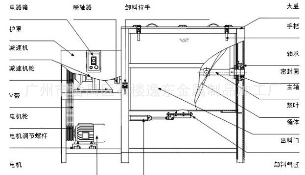 3、全不锈钢中心轴及螺带式桨叶,拌料迅速、均匀;