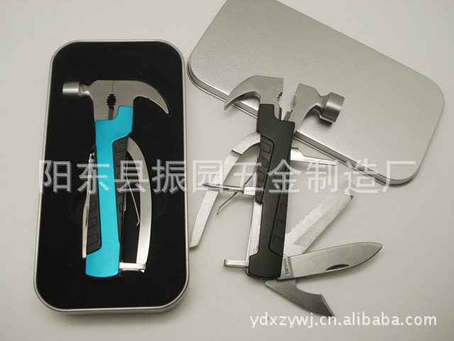 产品功能: 起钉器,锤子,平嘴钳,硬线切线钳,切线钳,小刀,十字螺丝刀,一字螺丝刀,开罐器,牙刀