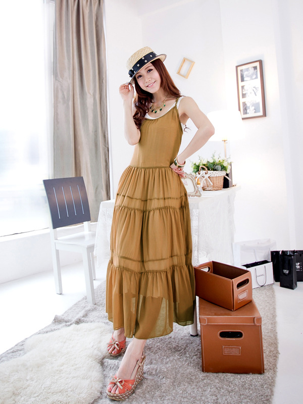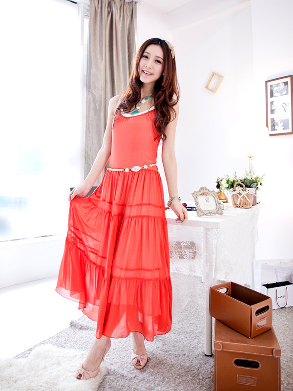 2012新款梵微羽轩出品波西米亚浪漫风情长裙吊带冰丝连衣长裙