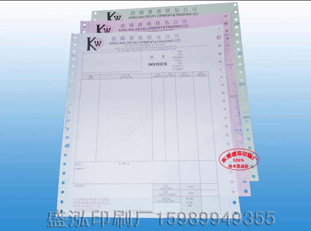 盛泓公司拥有一批资深生产技术人员,从事电脑打印纸生产及轮转票据印刷15年以上经验,工艺质量稳定有保障,公司拥有多条先进办公用纸加工生产线,设备齐全,交货快捷!除常规复印纸,传真纸,收银纸,空白电脑打印纸,还可以订做印刷多种特规尺寸,品种及规格齐全.多年来已服务于多个品牌商的代工,及办公设备软件商配套OEM订做 .其中印刷制作方面采用欧洲进口(西班牙诺迪牌)轮转多色印刷设备,沿袭欧洲品质,其优点运作稳定, 印色精细美观,产能高,而且印刷规格齐全,印刷尺寸高度从1英寸(25.4MM)至18英寸45.7MM,宽度从3英寸(76MM)至19英寸(480MM),纸质厚度从40克至150克均可印刷,从一色到五色、五色加两色均可以印刷。我们提供设计、排版制版、生产印刷、打孔配页、切张封边,装配包装、物流配送等高效的一条龙服务。
