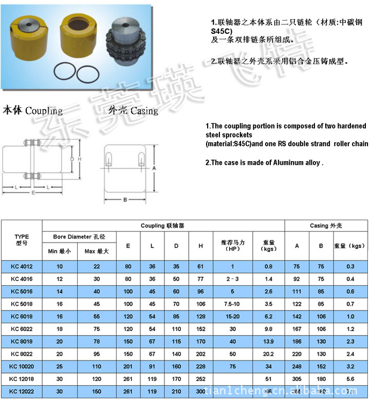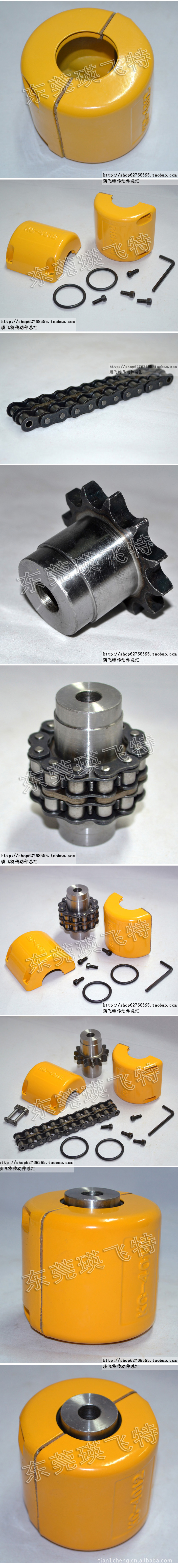 链条联轴器是利用公用的链条,同时于两个齿数相同的并列链轮啮合,不同结构型式的链条联轴器主要区别是采用不同链条,常见的有双排滚子链联轴器、单排滚子链联轴器、齿形链联轴器、尼龙链联轴器等。